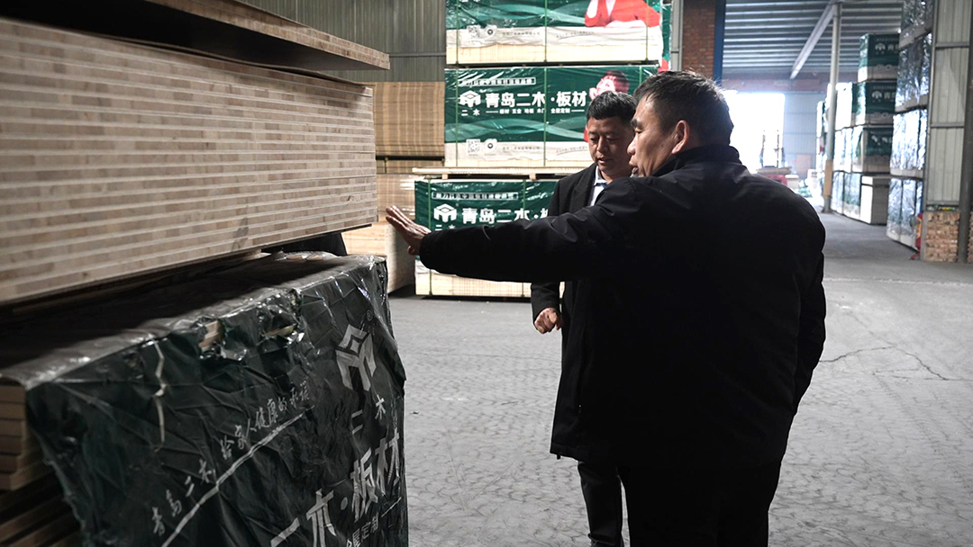 青島二木董事長視察河北總倉,查看板材備貨情況